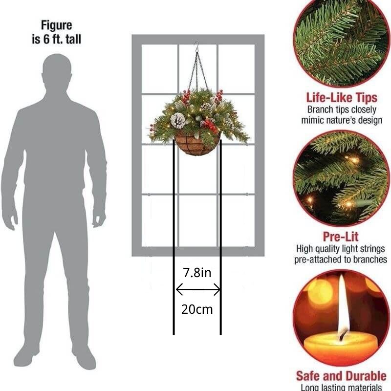 EASY MAINTENANCE: No need to water or clean up needles, this hanging pine basket will last many holidays with it's time-tested, fire-resistant, and non-allergenic needles.