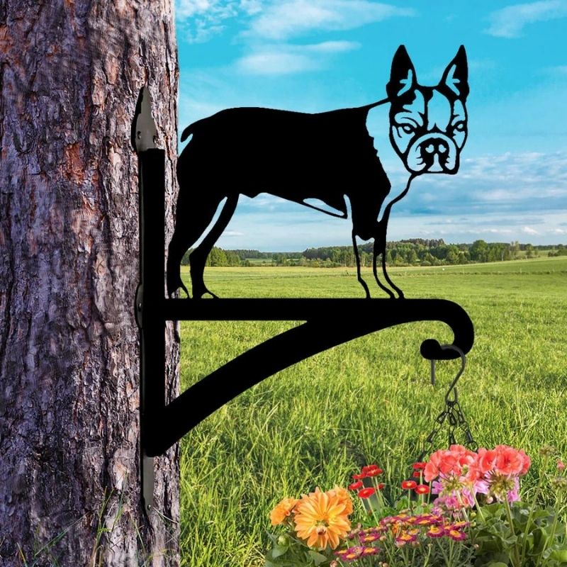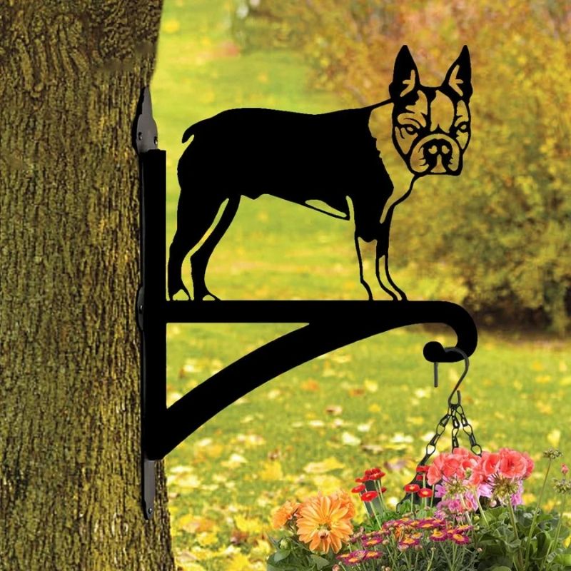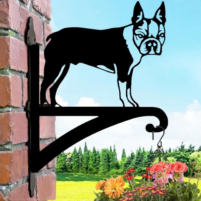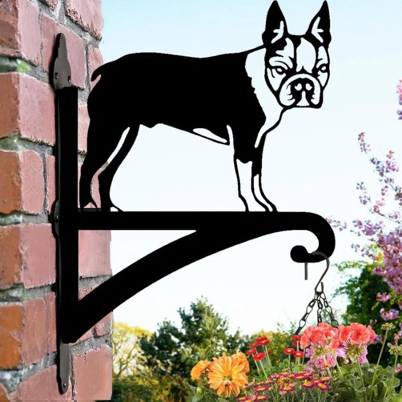 Boston Terrier Detailed Metal Hanging Bracket Plant Stand PS090