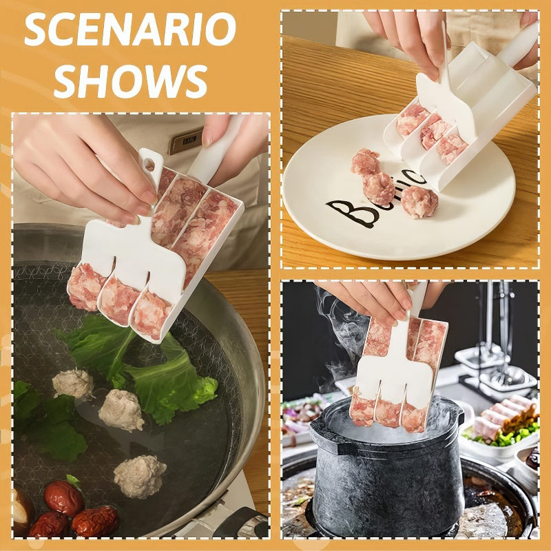 [3 Meatballs at 1 Time] With the 3 spoons type design, you just need to use the supporting special card shovel to cut the meatball's shape and put the meatball in the pot, the shaping effect of the meatball is good.