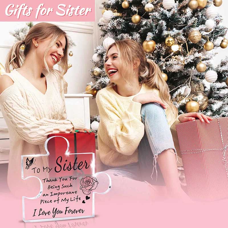 Beyond its sentimental value, this engraved puzzle acrylic plaque serves as a versatile decorative item. It can be proudly displayed on a desk, shelf, or living room, etc, radiating sisterly affection and adding a touch of warmth to a sister's room.