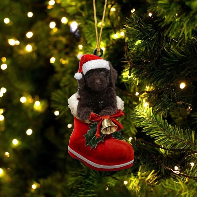Goldendoodle chocolate In Santa Boot Christmas Hanging Ornament SB066