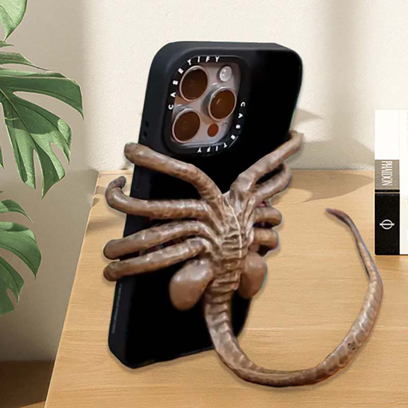 - 📱UNIVERSAL PHONE COMPATIBILITY: This Facehugger Phone Holder is designed to fit any phone size securely. Its adjustable tail wraps around your device, ensuring it stays in place without slipping or falling.