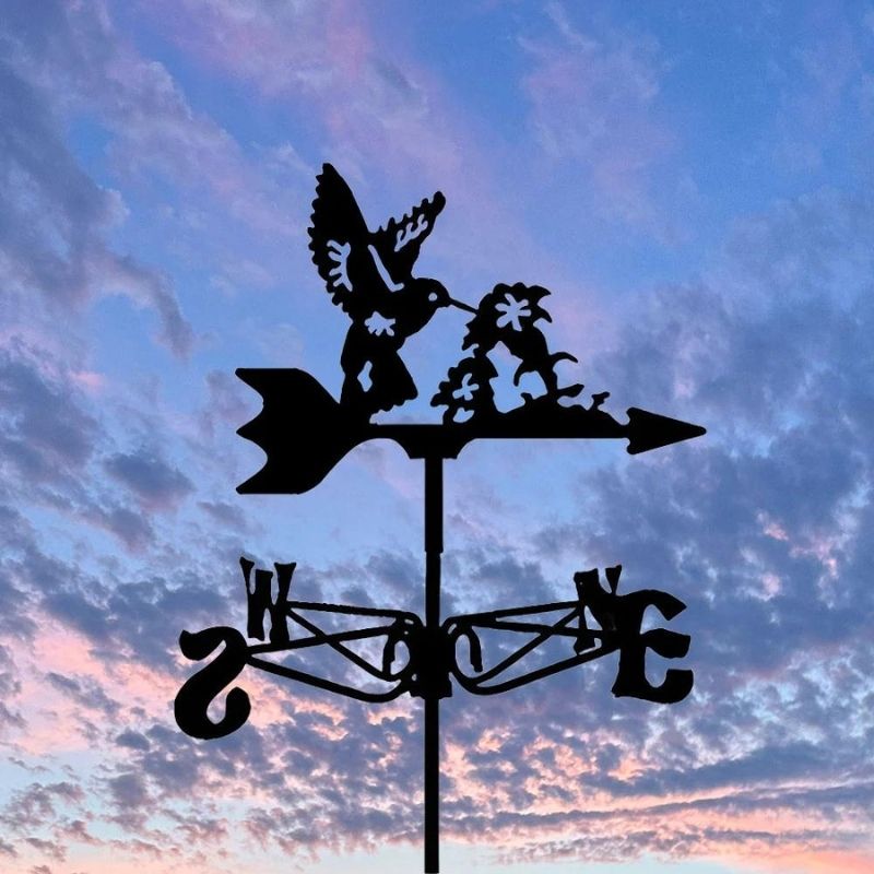 Hummingbird and Flower Stainless Steel Weathervane MW061