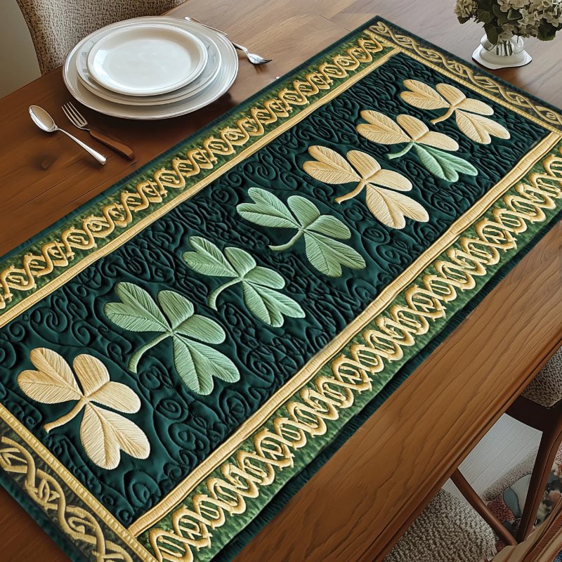 Discover the charm of our Irish Shamrock Table Runner, designed to add a touch of elegance and warmth to your dining space!