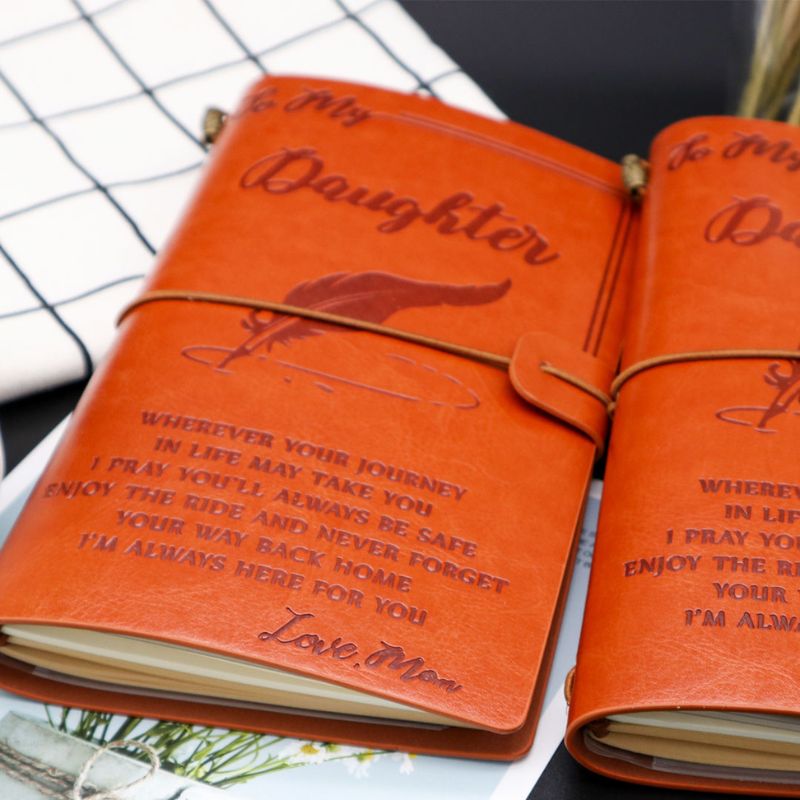 Mom To Daughter - Enjoy The Ride - Engraved Leather Journal Notebook