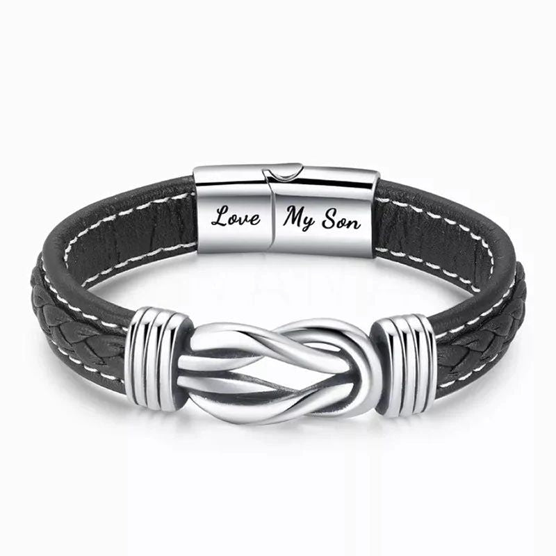 To My Son - "Mother and Son Forever Linked Together" Braided Leather Bracelet