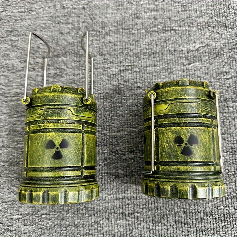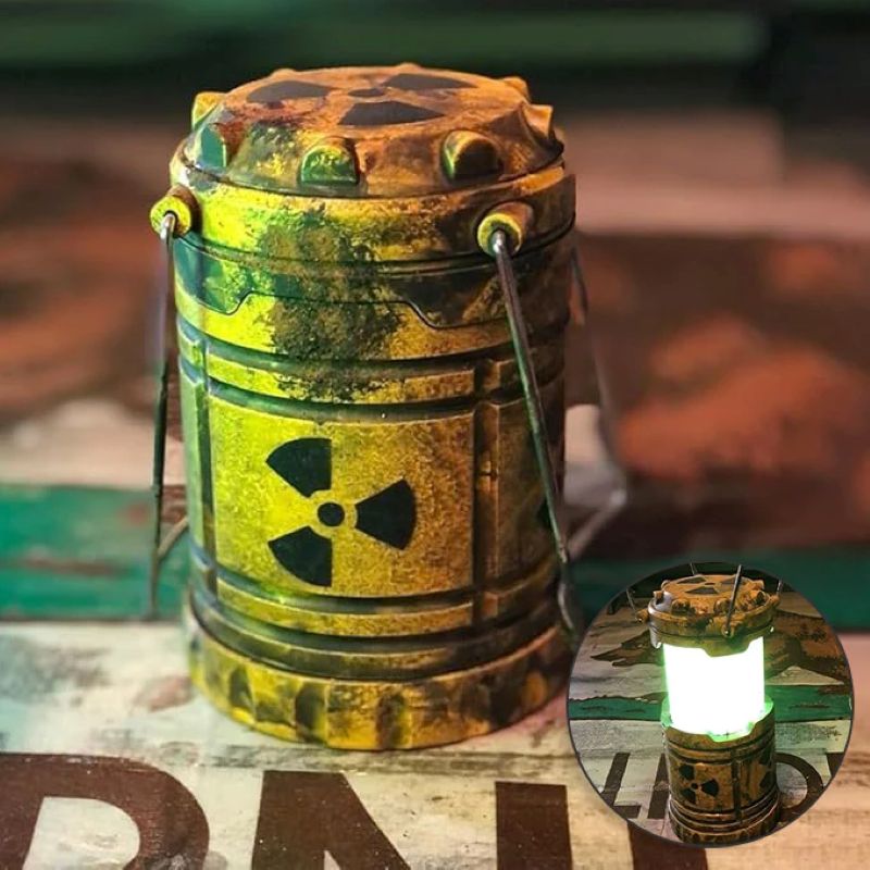 Equipped with two rugged handles reminiscent of a camping lantern, this light can be lifted to reveal its glowing green core. When extended, it serves as an ambient night light, casting an eerie yet captivating glow, perfect for sci-fi enthusiasts and industrial décor lovers alike.