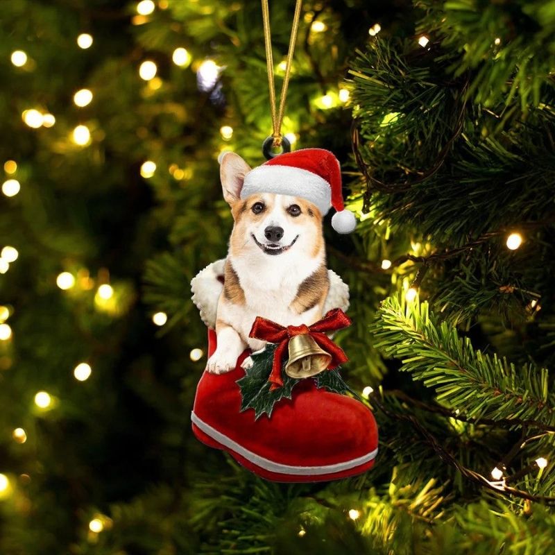 Pembroke Welsh Corgi Red & White In Santa Boot Christmas Hanging Ornament SB177