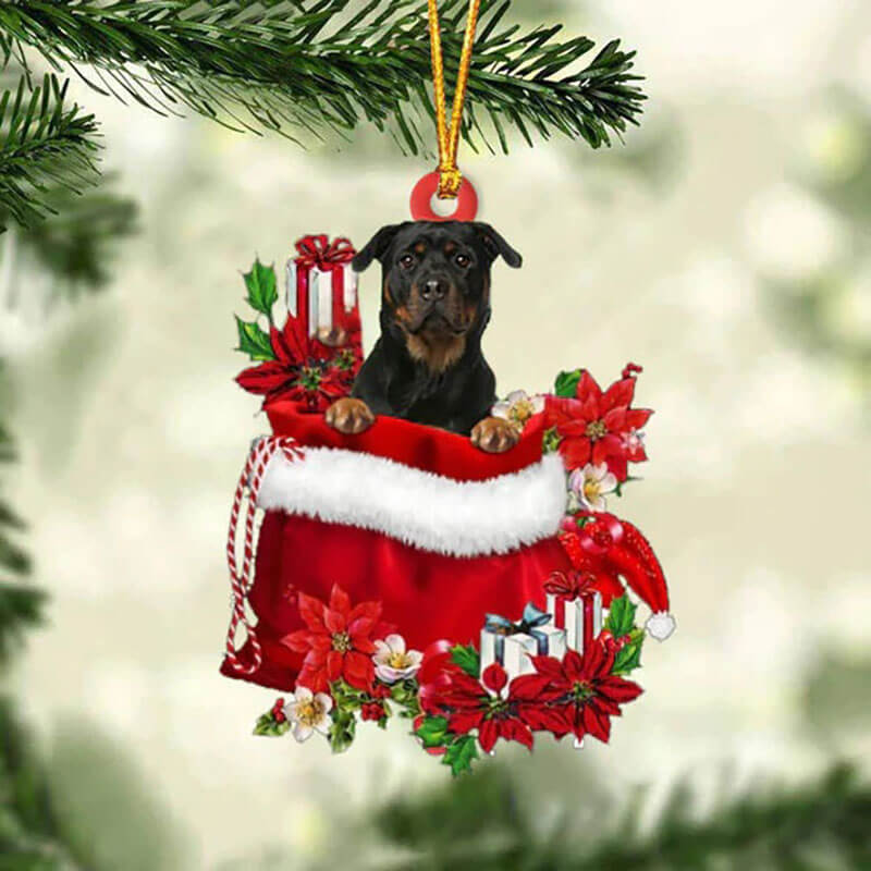 Rottweiler In Gift Bag Christmas Ornament GB132