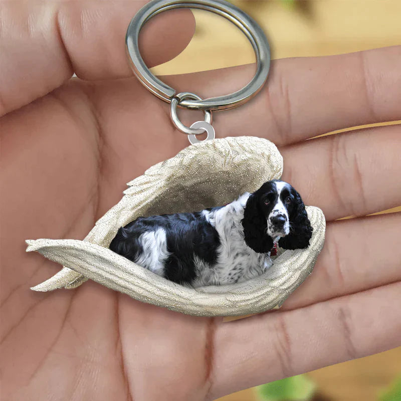 Sleeping Angel Acrylic Keychain Black and White English Springer