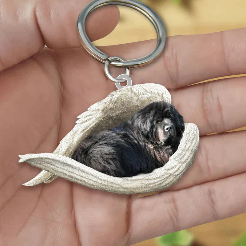 Sleeping Angel Acrylic Keychain New Foundland Dog
