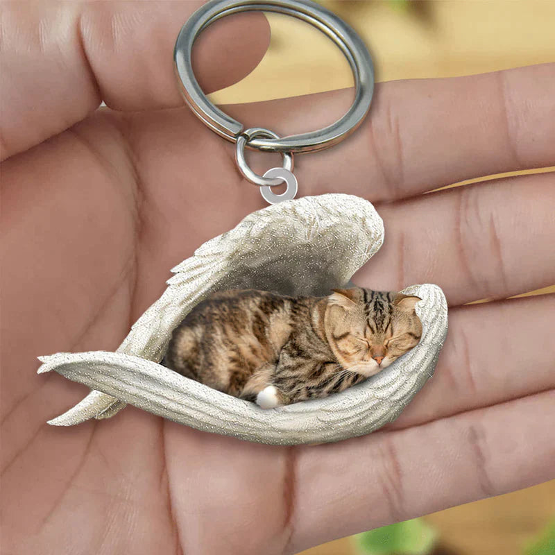 Sleeping Angel Acrylic Keychain Scottish Fold Cat