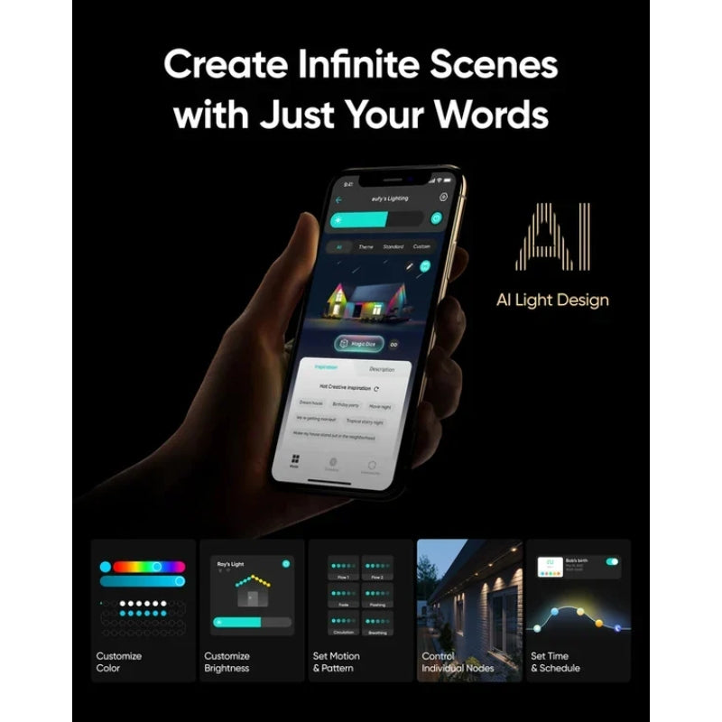 Have complete control at your fingertips with our intuitive smartphone app. Illuminate your home with a touch, switch between a spectrum of vibrant colors, and set timers to sync with the rhythm of day and night. Your holidays have never been brighter.