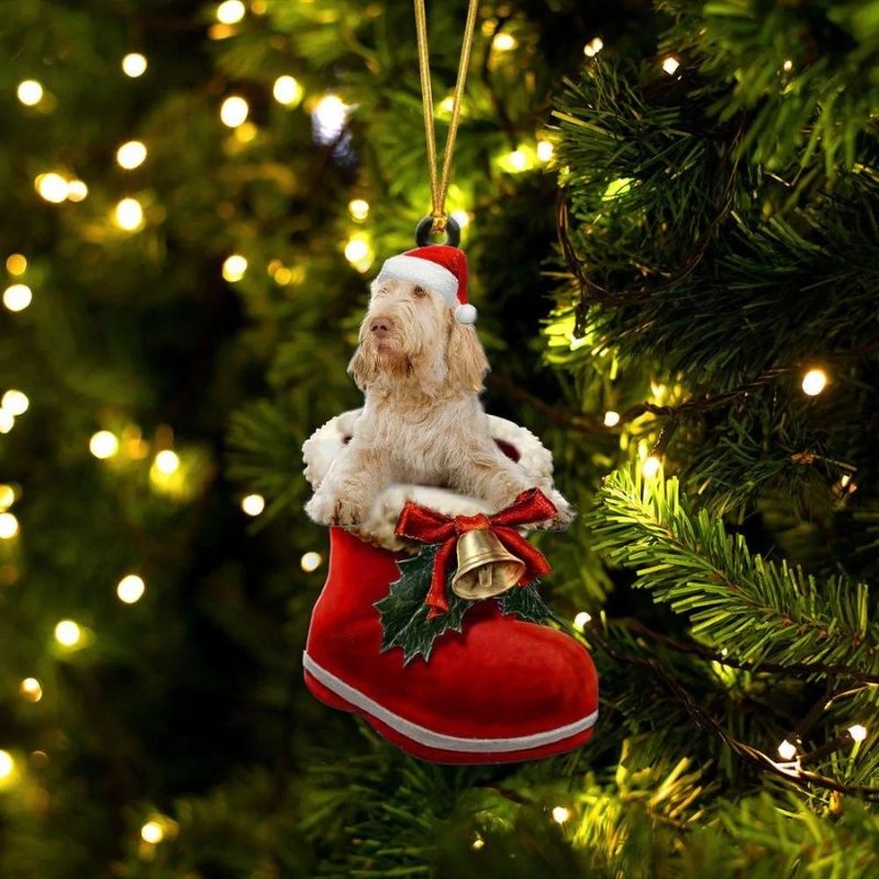 Spinone Italiano In Santa Boot Christmas Hanging Ornament SB160