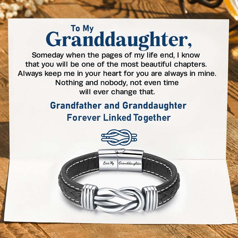 To My Granddaughter - "Grandfather and Granddaughter Forever Linked Together" Braided Leather Bracelet