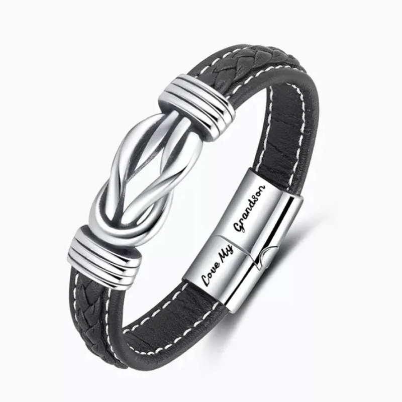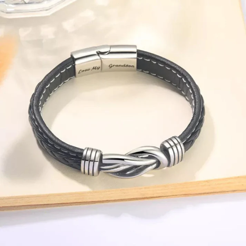 To My Grandson - "Grandmother and Grandson Forever Linked Together" Braided Leather Bracelet